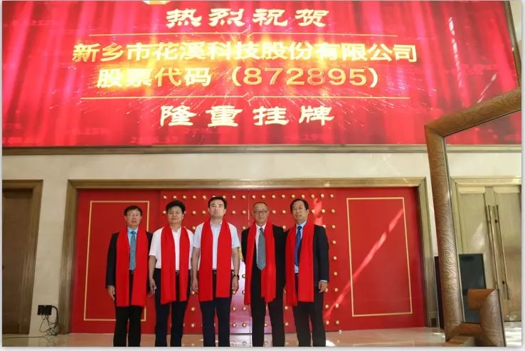 2018年8月31日上午9:30時,新鄉市花溪科技股份有限公司(簡稱:花溪科技,股票代碼:872895)新三板掛牌敲鐘儀式在北京全國中小企業股份轉讓系統成功舉行。中國農機工業協會副秘書長寧學貴、獲嘉縣人民政府縣長劉軍偉、新鄉市金融局副局長張延明等特邀嘉賓及公司股東代表、員工代表、主辦券商、律師事務所、會計師事務所代表共同出席了掛牌儀式,共同見證花溪科技這一里程碑式的重要時刻。